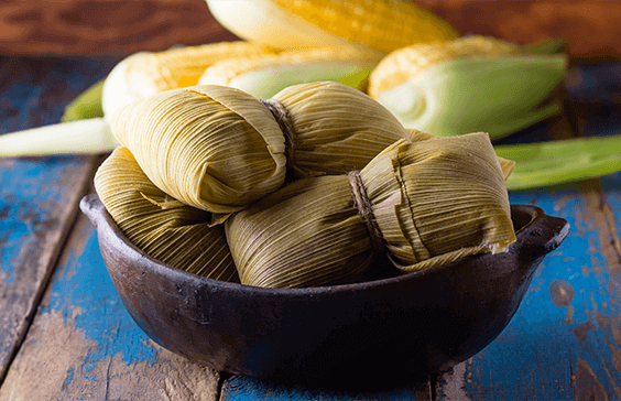Pela las mazorcas y reserva las hojas grandes sin dañarlas.