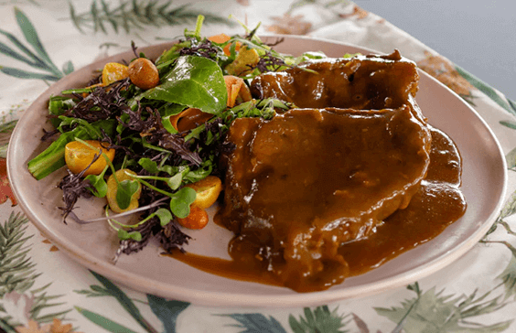 Retira la posta del horno ¡Y listo! Tendrás una deliciosa posta cartagenera para compartir en familia. Acompaña con arroz de coco y yuquitas fritas.